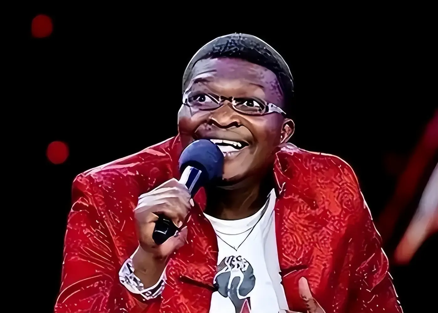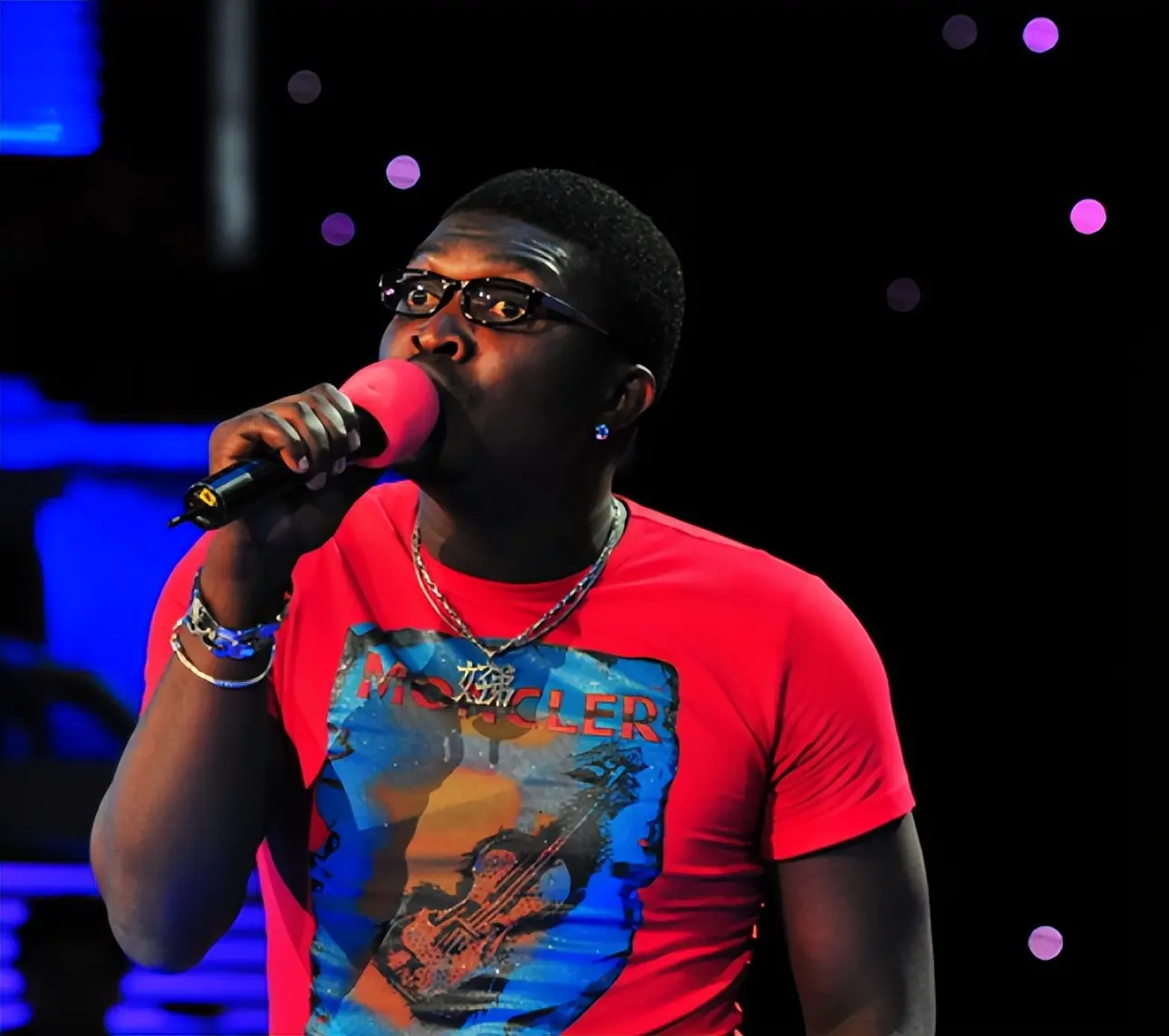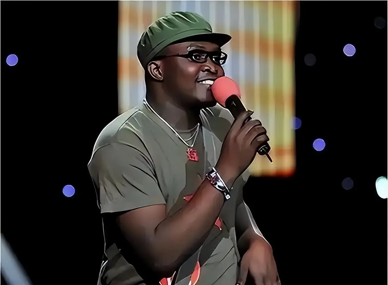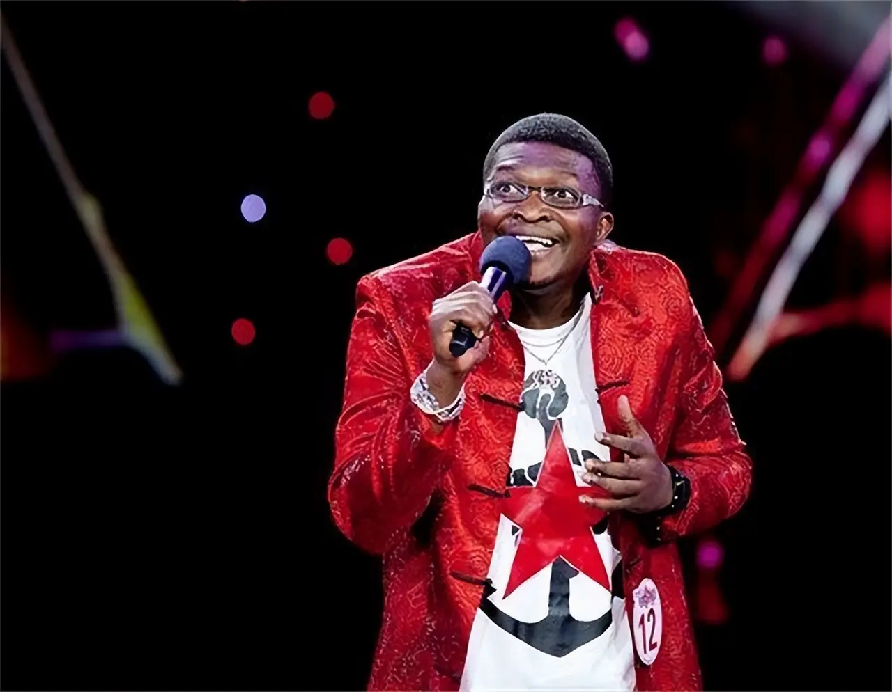 后来,他加入了"五洲唱响"乐团,以黑人男主唱的身份,第一次站上了《星光大道》的舞台。